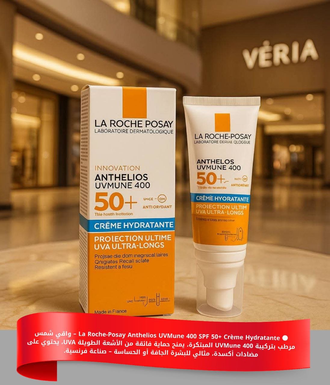 كريم واقٍ من الشمس بتركيبة UVMune 400 المبتكرة – صناعة فرنسية، يوفر حماية فائقة ضد الأشعة فوق البنفسجية الطويلة (UVA Ultra Longs)، يحتوي على مضادات أكسدة فعالة ويمنح ترطيبًا يدوم، مناسب للبشرة الجافة أو الحساسة.